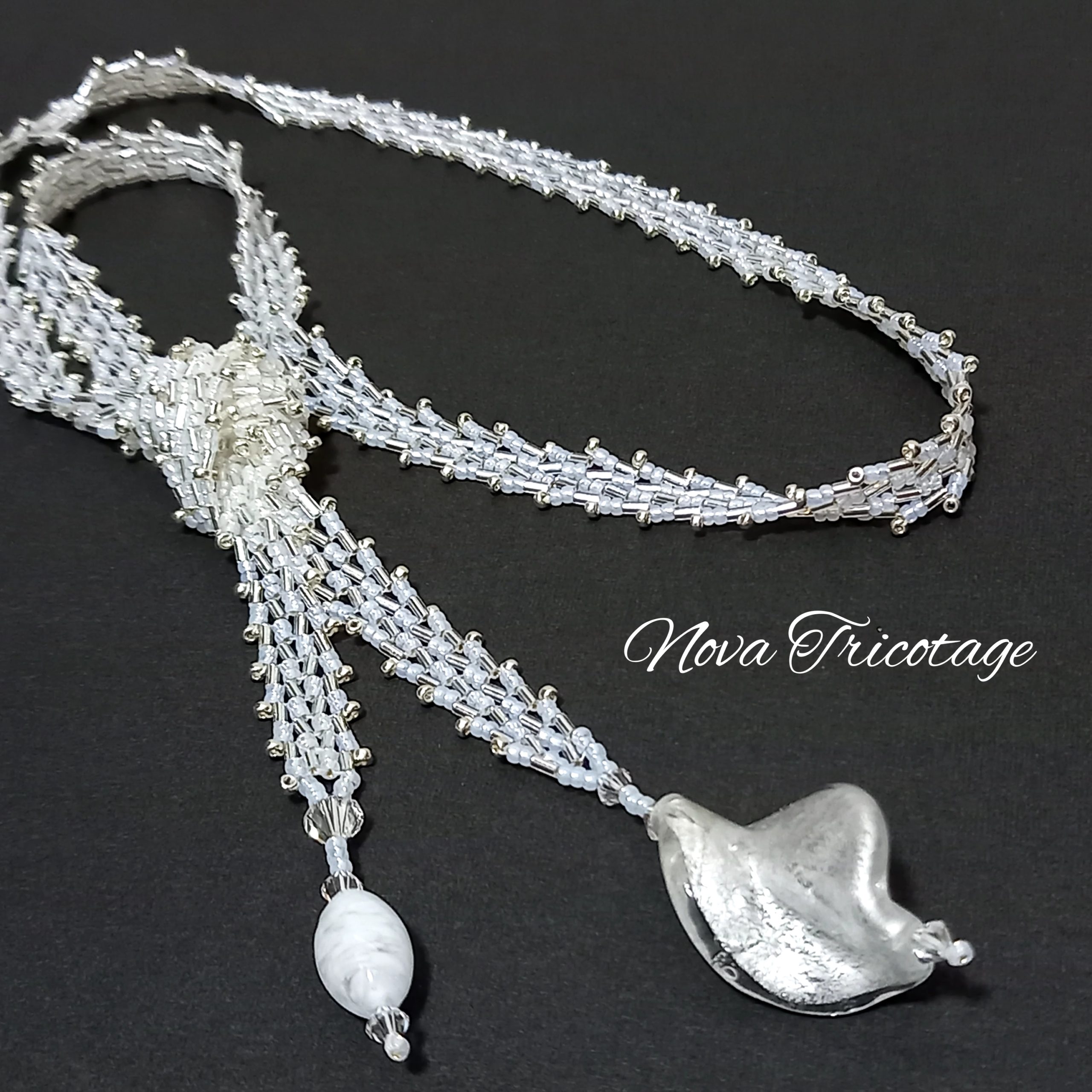 ヘリンボーン編みで作成した ラリエッタです🎵