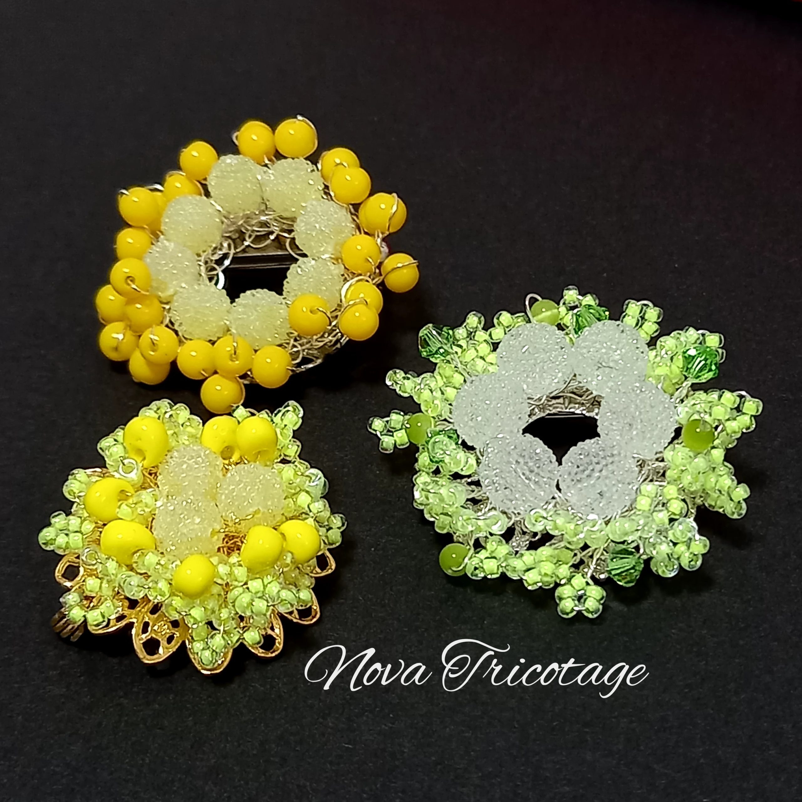 ワイヤークロッシェ、ワイヤーワーク、ビーズステッチ等の技法を取り入れて